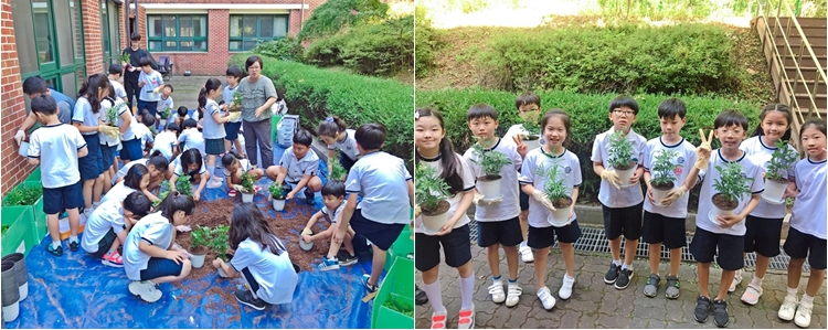 4개월 동안, 실내 학교숲의 새로운 모델을 만들기 위해 '학교숲 추진위원회'를 구성하고 4차례의 회의를 거쳐 실내 학교숲 마스터플랜을 완성했습니다. 그리고 한설그린에서 시공을 맡아 방학 동안 공사를 하면서 아이들과 함께 공기정화 식물을 심어보기도 했습니다.