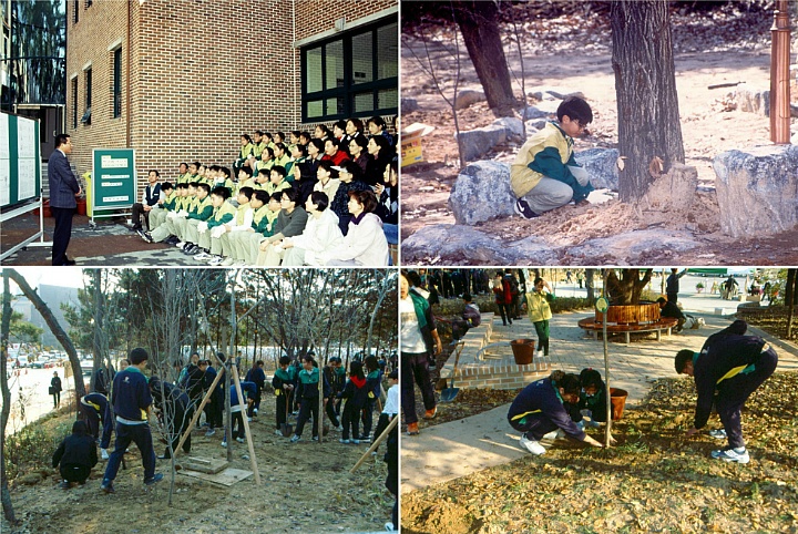서울 화랑초등학교 뒤편으로 불암산 자락과 이어져 원래부터 숲이 많이 있었다고 생각하는 사람들도 있겠지만, 1999년 학교앞은 빈 공터에 눈에 띄는 나무 1~2 그루가 전부였습니다. 소운동장처럼 먼지 나는 공간이 덩그러니 존재했던 곳일 뿐이었습니다.